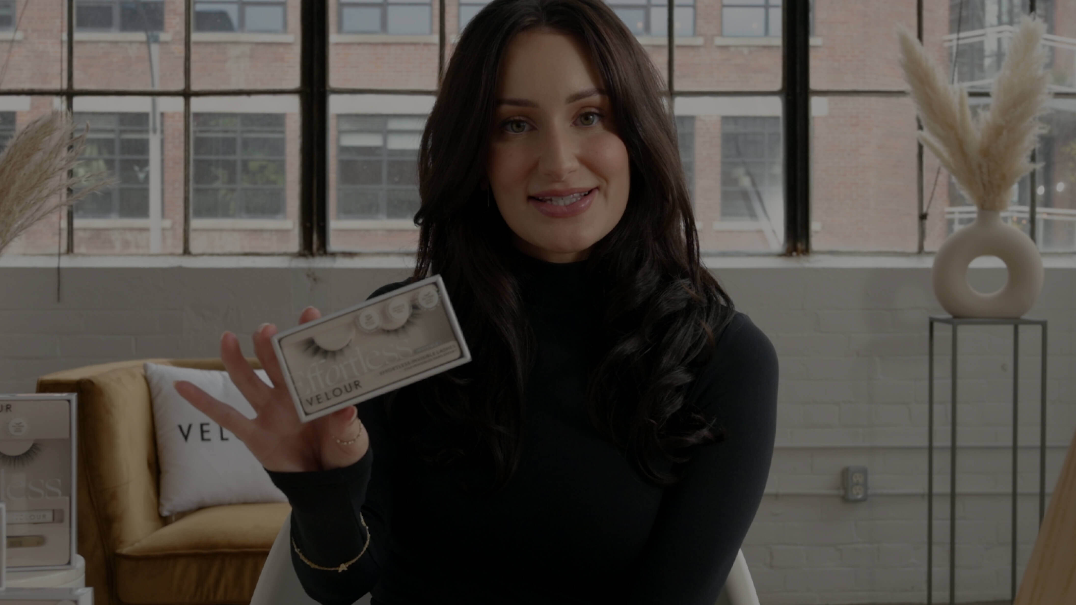 Option A: Using Velour Lash Adhesive: Apply a thin layer to the lash band and wait 30 seconds. Pro Tip: Our formula actually turns from white to a blue sheen so you'll know it's ready to apply!
